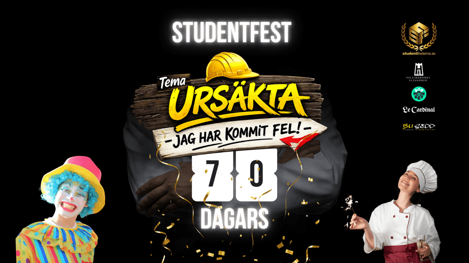 Biljettlänk70 DAGARS STUDENTFEST x URSÄKTA JAG HAR KOMMIT FEL!?